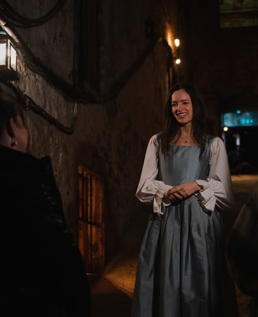 Your journey begins beneath the Royal Mile at 11.10, stepping down into the preserved streets of The Real Mary King’s Close. Led by a storyteller guide in period dress, you will explore original 17th-century spaces and hear the real stories of the people who lived, worked and survived here. Social history unfolds where it happened, rich with detail, atmosphere and human voices from the past.